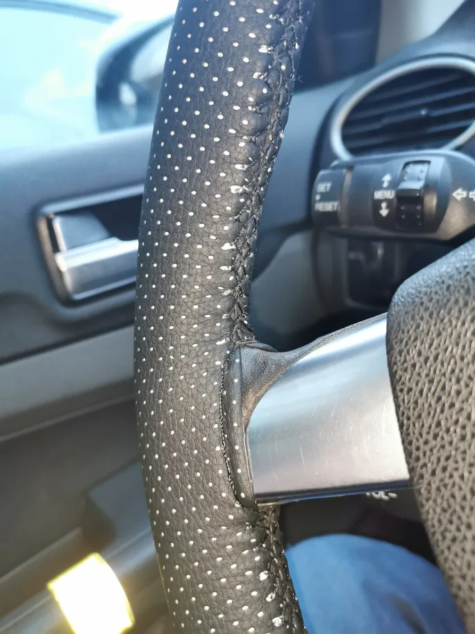 (Eng) I take the second time, leatherette, the first was enough for almost three years. Sits on the steering wheel without problems, small folds diverge in a week. (Rus) Беру второй раз, кожзам, первого хватило почти на три года. Садится на руль без проблем, мелкие складки расходятся за неделю.