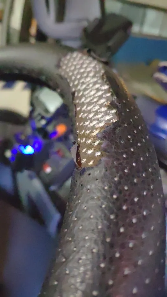 Беру второй раз, первый был с более глянцевым кожзамом, через пару лет полупился, (3 фото), а этот более матовый, в руках приятнее, даже в тканевых перчатках цепкий руль, но такое ощущение, что быстрее обдерётся. Ну посмотрим. Пришел относительно быстро. Советую начинать сшивать со спицы, что бы потом шов был за ней, и очень плотно стягивание нить, она не порвётся.
