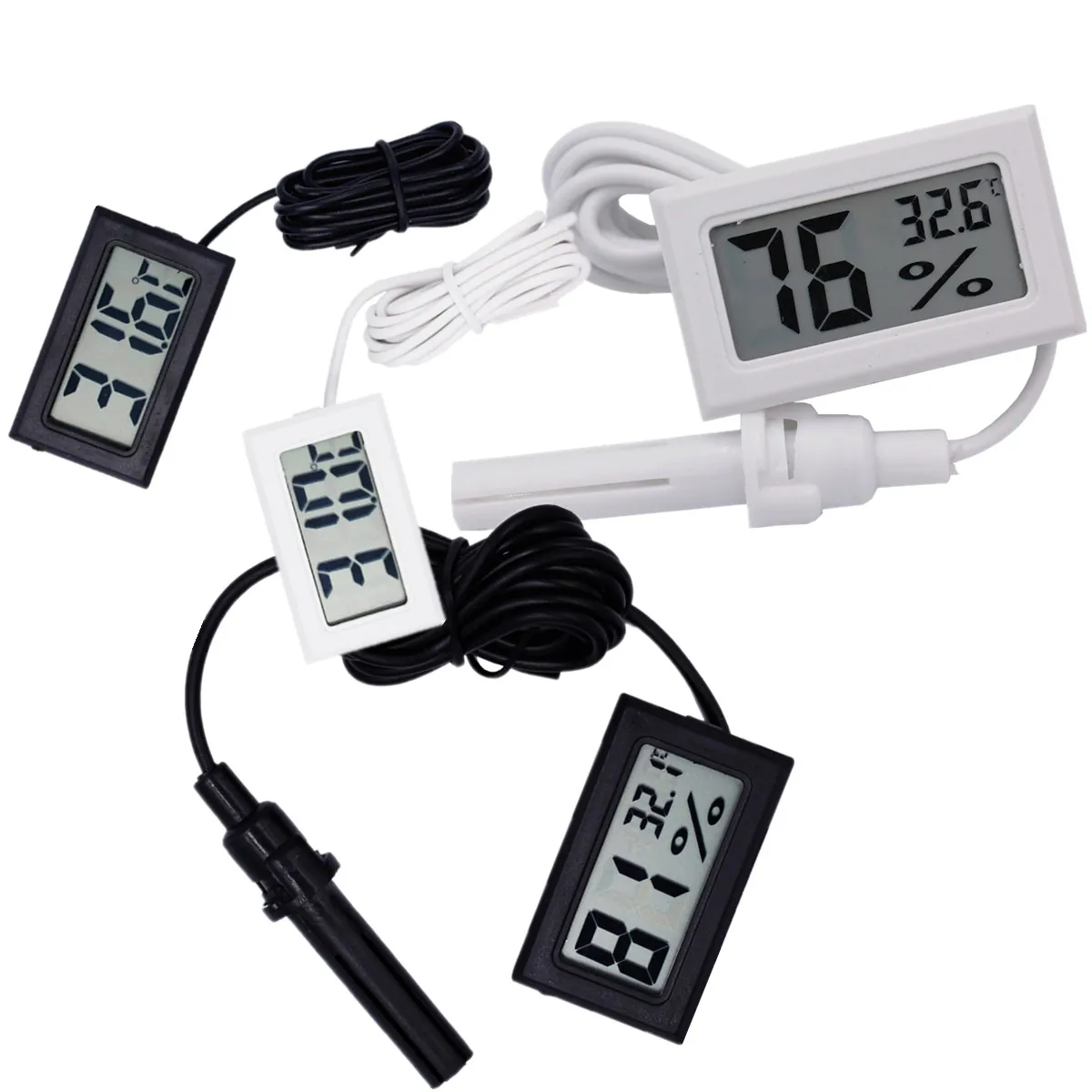 Цифровой ЖК-термометр для аквариумной морозильной камерыМоделирование простой, элегантный, ЖК-панели встроенные соединения, влагостойкий,Сильный анти-помех, применяется для холодильных шкафов, счетчиков дисплея иДругие потребности измерения температуры и отображения различного оборудования.Диапазон температур: -50 ~ 110 °CРазрешение дисплея температуры: 0,1Точность измерения температуры: ± 1 °CПитание: два аккумулятора LR44-питание ed (не входит в комплект)Длинный зонд: 1 метр Литой чехол-зонд
