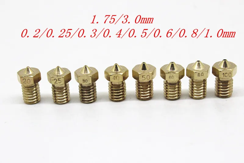 1 шт., латунные форсунки для 3D-принтера, V6 и V5, 0,20,250,30,40,50,60,81,0 мм