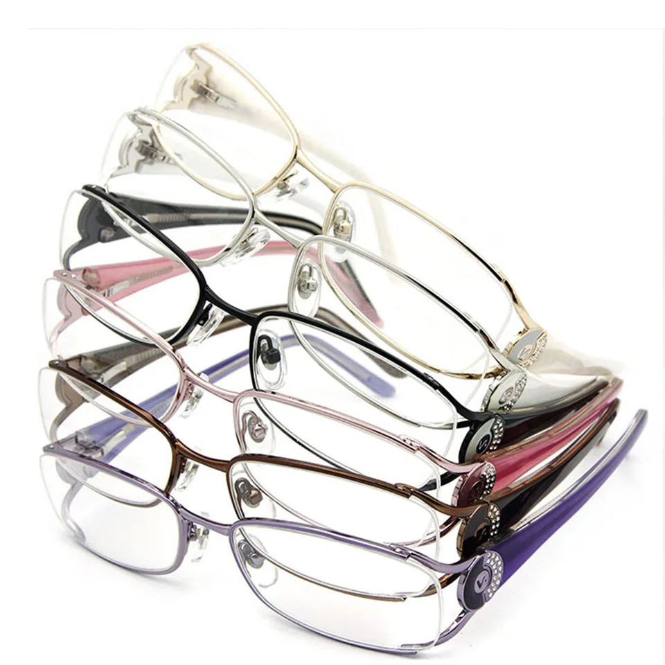 Высококачественная Женская оптическая оправа из нержавеющей стали, украшение из бриллиантов снаружи шарнирной части;