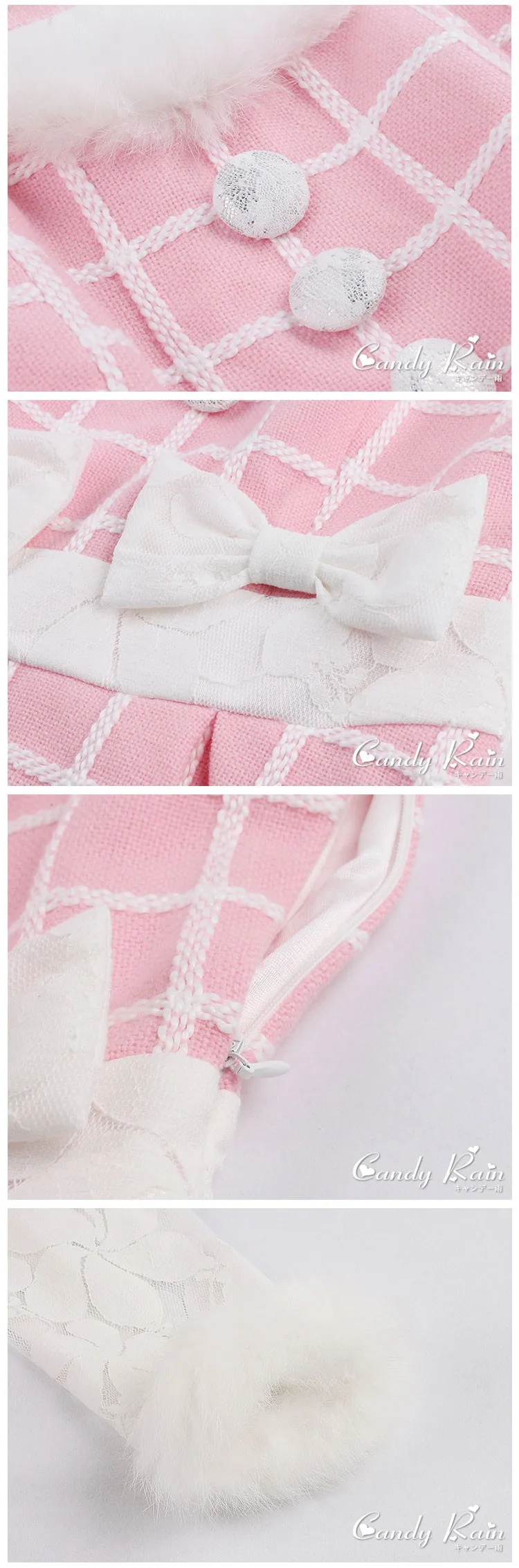 Милое платье принцессы в стиле "Лолита", яркое рождественское зимнее кружевное розовое шерстяное платье с помпоном из кроличьего меха и жемчугом, с длинным рукавом, C16CD6132 icon star icon star icon star icon star icon star
