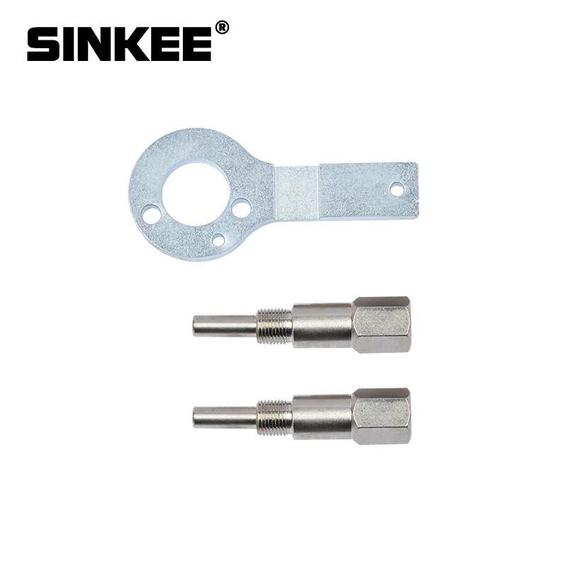 Комплект содержит распределительные винты для выравнивания вала, инструмент для выравнивания шкива коленчатого вала и штифт для натяжения.