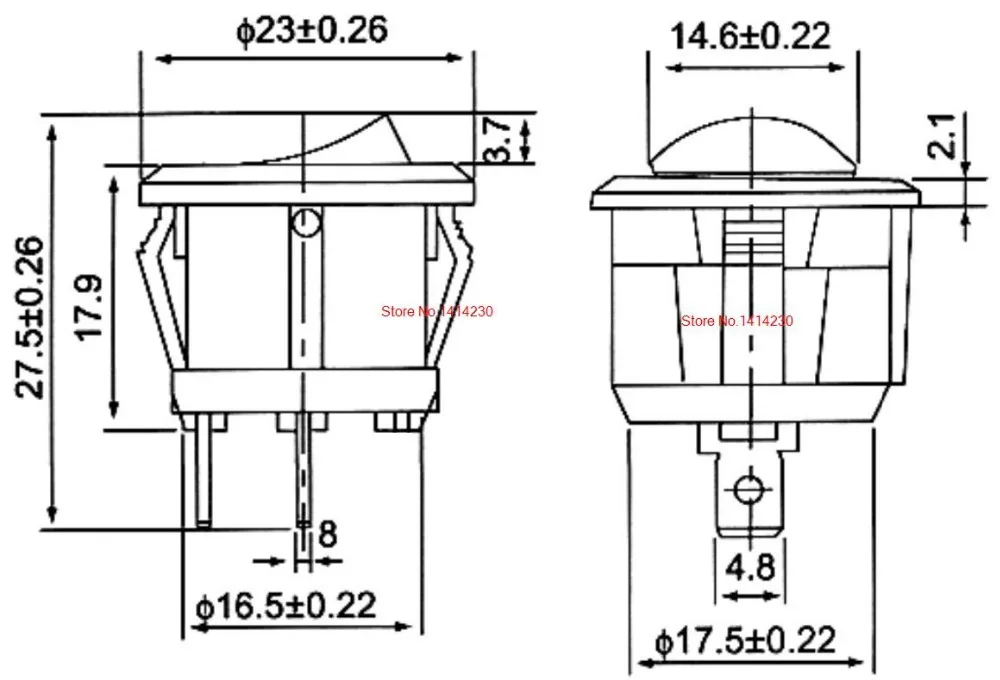 Тумблер с большим круглый клавишный выключатель диаметром 23 мм, черный, белый, красный, 10 А125 В, 6 А250 В