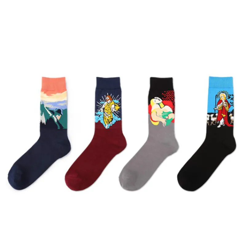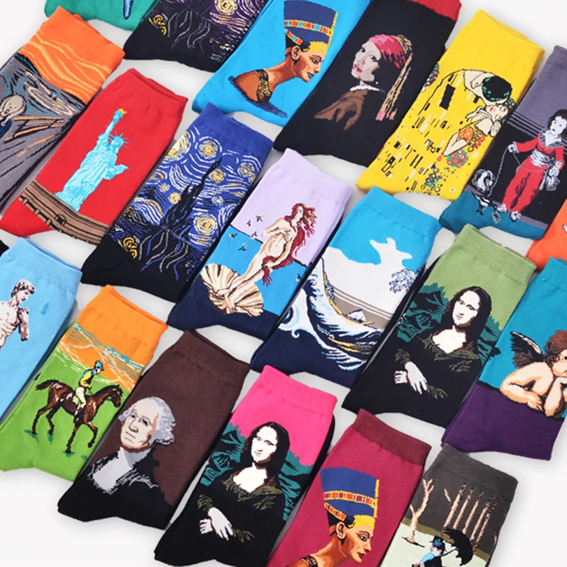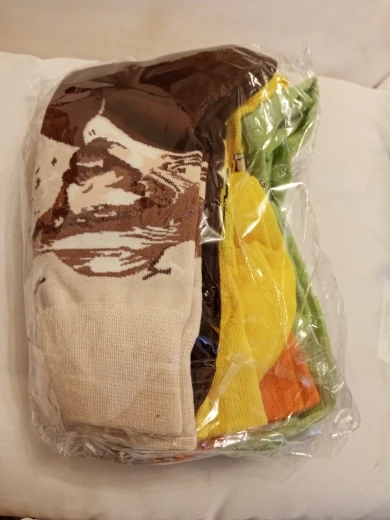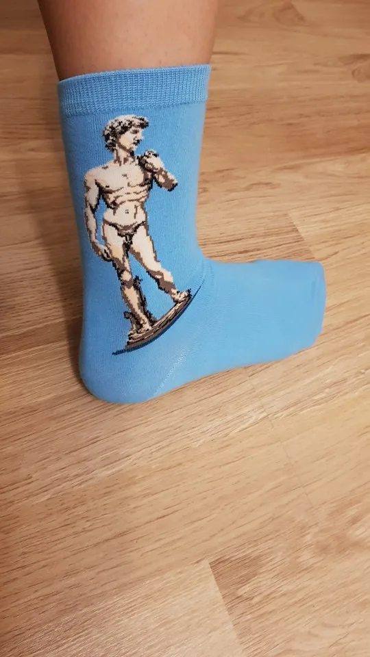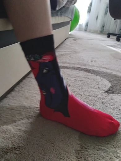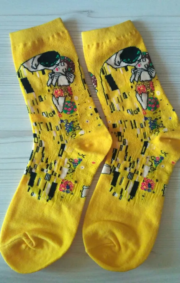 Прочные носки с хорошим принтом, довольно длинные, больше похожи на гольфы, ткань приятная. Для 37-38 размера великоваты, но не серьёзно. Пришла посылка в Петербург за месяц. Очень довольна, спасибо)))