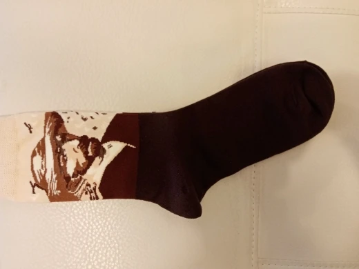 Картинка очень чёткая, хоть и не принт. Носки демисезонные - достаточно тёплые. Резинка туговата. с продавцом не общалась
