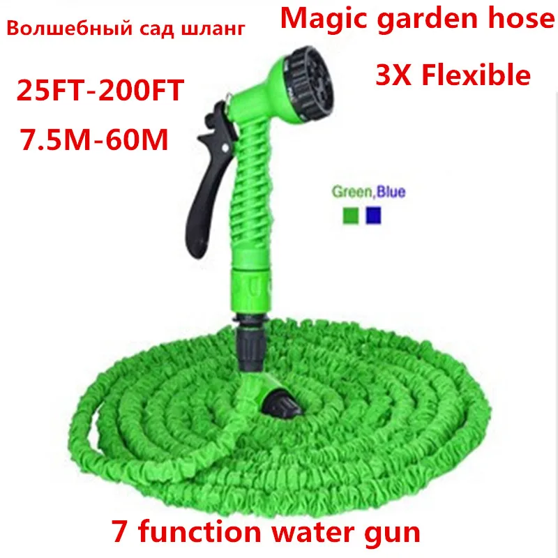 Поливочный гибкий расширяемый садовый шланг, катушки, синий и зеленый, 25-200 футов + 7 фоторазъемов (ЕССША)