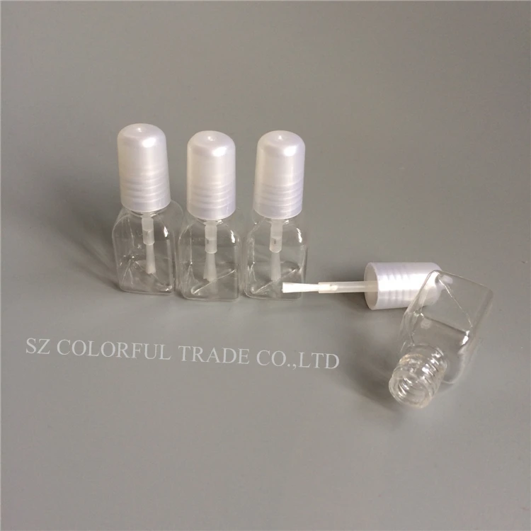 Бесплатная доставка, 50 шт.Лот, искусственная прозрачная пластиковая пустая квадратная полированная бутылка для ногтей с белой крышкой и кисточкой, пластиковая бутылка для ногтей для детей