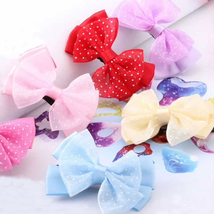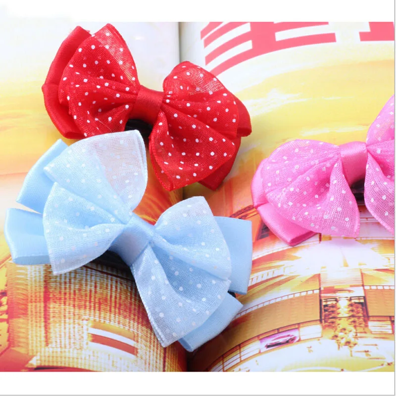 50 шт.лот, милые банты для шерсти домашних животных с зажимом, новый дизайн 2015, украшенные кружевом, двойной бант, аксессуары для груминга собак и кошек, 5 цветов