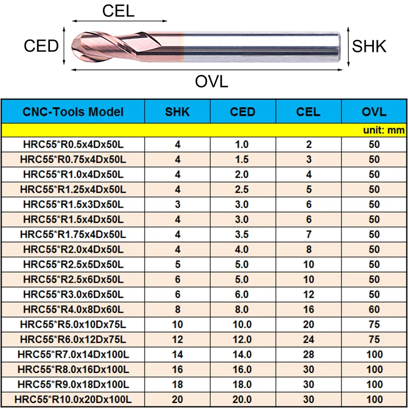 Концевая фреза HRC55, твердосплавная сферическая насадка с двумя канавками, для работ по дереву и дереву