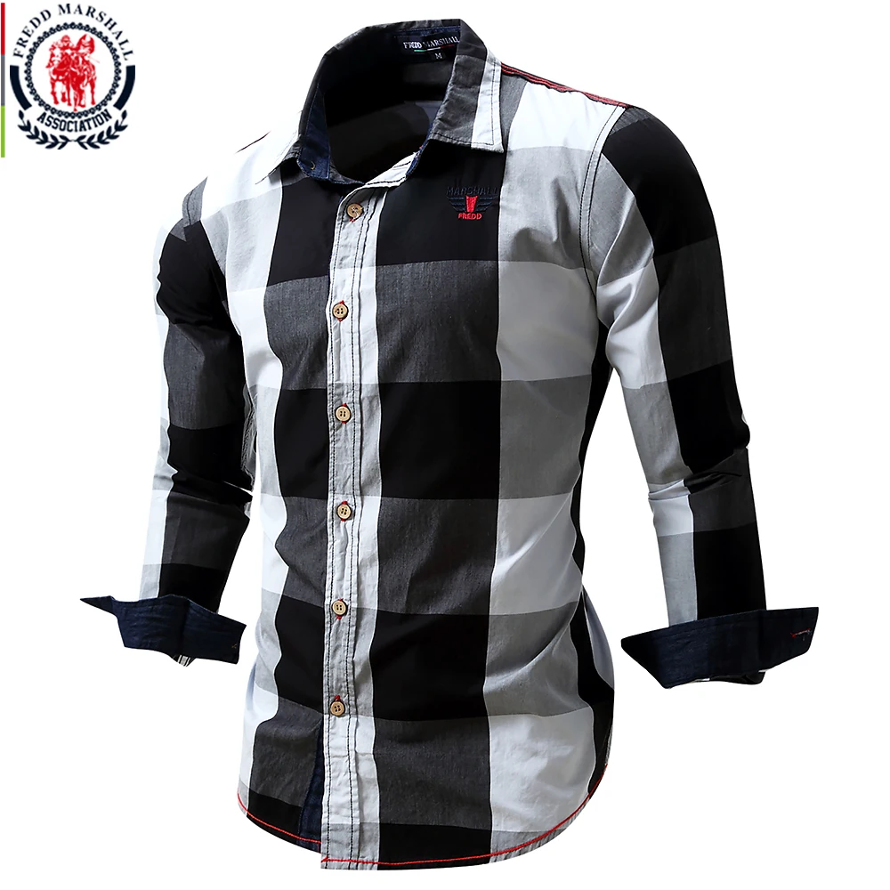 2019 Новая мужская клетчатая рубашка из 100% хлопка с длинным рукавом, приталенная Повседневная модная деловая рубашка размера плюс M-3XL 099