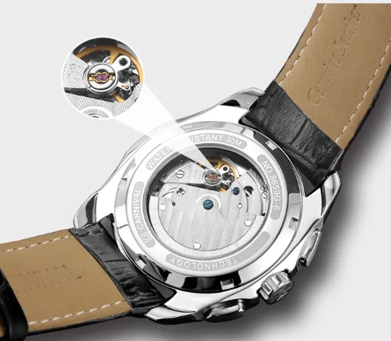 Часы наручные мужские механические, с автоподзаводом и кожаным ремешком, 8659 г