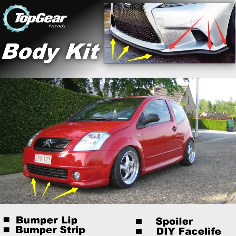 Для Citroen C2 2003 ~ 2010 Бампер для губ/передний спойлер дефлектор для верхней части передач для тюнинга автомобиля/комплект верхней части корпуса/юбка в полоску