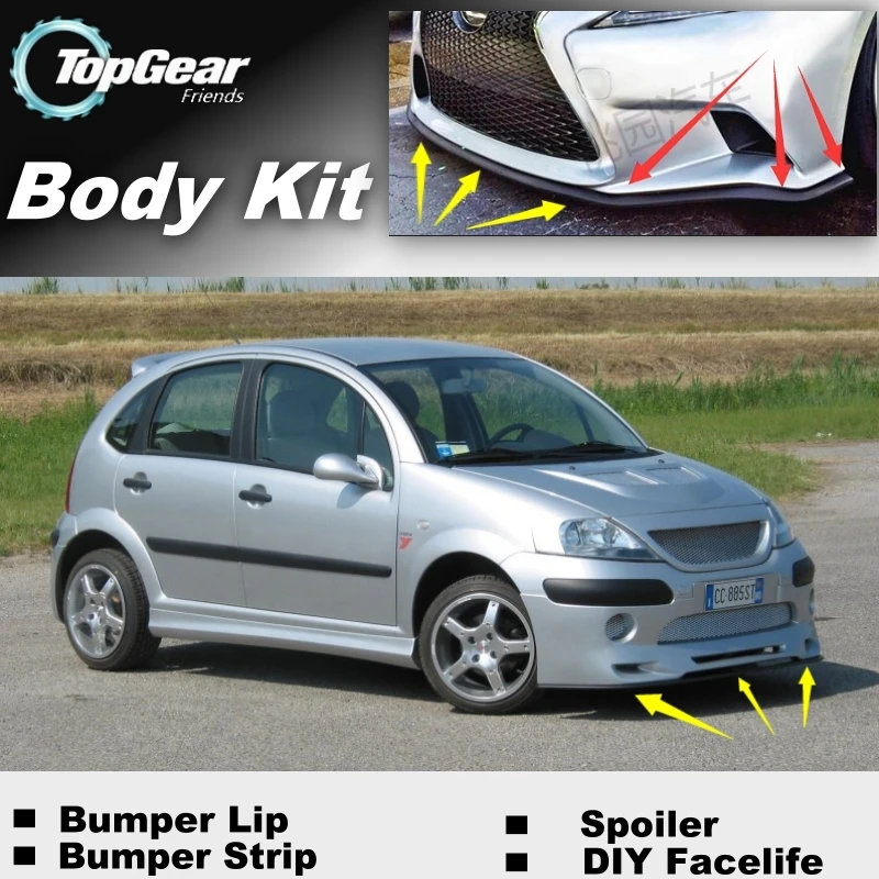 Для Citroen C3 / C3 Picasso Бампер для губ/передний спойлер дефлектор для верхней части передач для тюнинга автомобиля/комплект верхней части корпуса/юбка в полоску