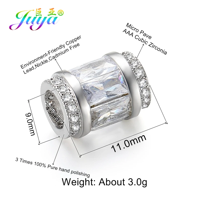 Металлические бусины Juya сделай сам с отверстием из кубического циркония, аксессуары для бисероплетения, натуральные камни, жемчуг, браслет, ожерелье