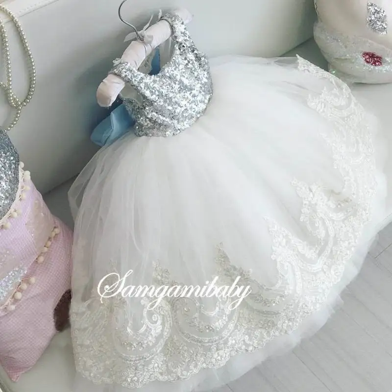 Розничная продажа, летнее новое платье принцессы для девочек, серебристое вечерние жевное платье без рукавов с бантом и блестками, детская одежда, E17007