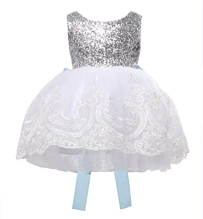 Новое летнее платье принцессы для девочек; Вечерние платья без рукавов с серебряными блестками и кружевным бантом; Одежда для детей; От 1 до 5 лет; 17007