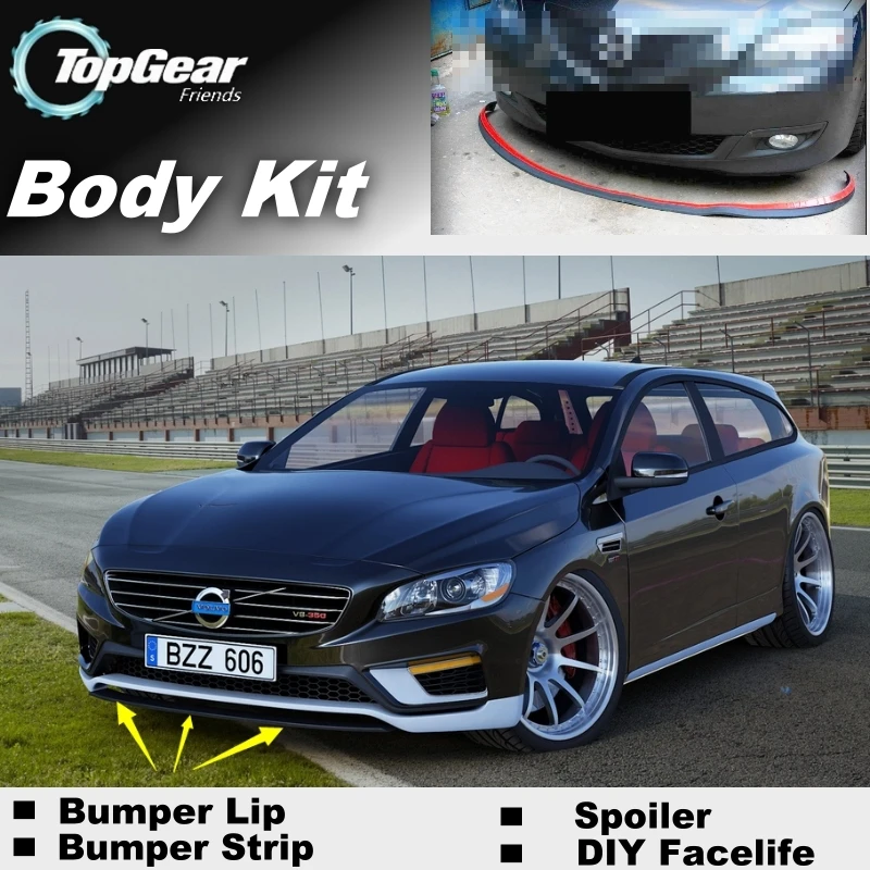 Для Volvo V60 2010 ~ 2015 Бампер Губы/передний спойлер дефлектор для верхней части шестерни Firends Тюнинг автомобиля/комплект верхней части тела шестерни/юбка в полоску
