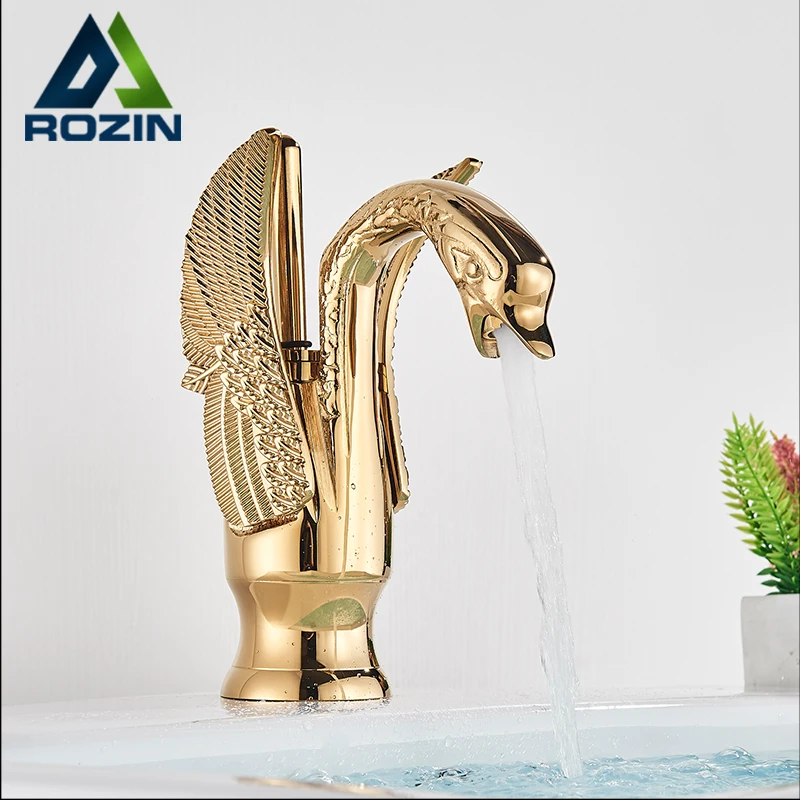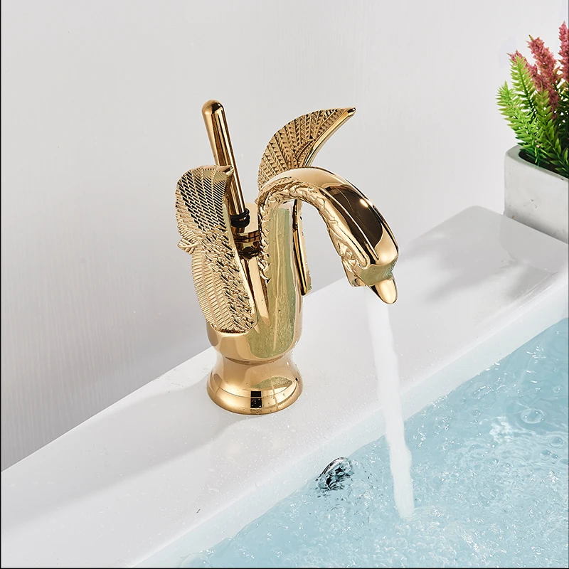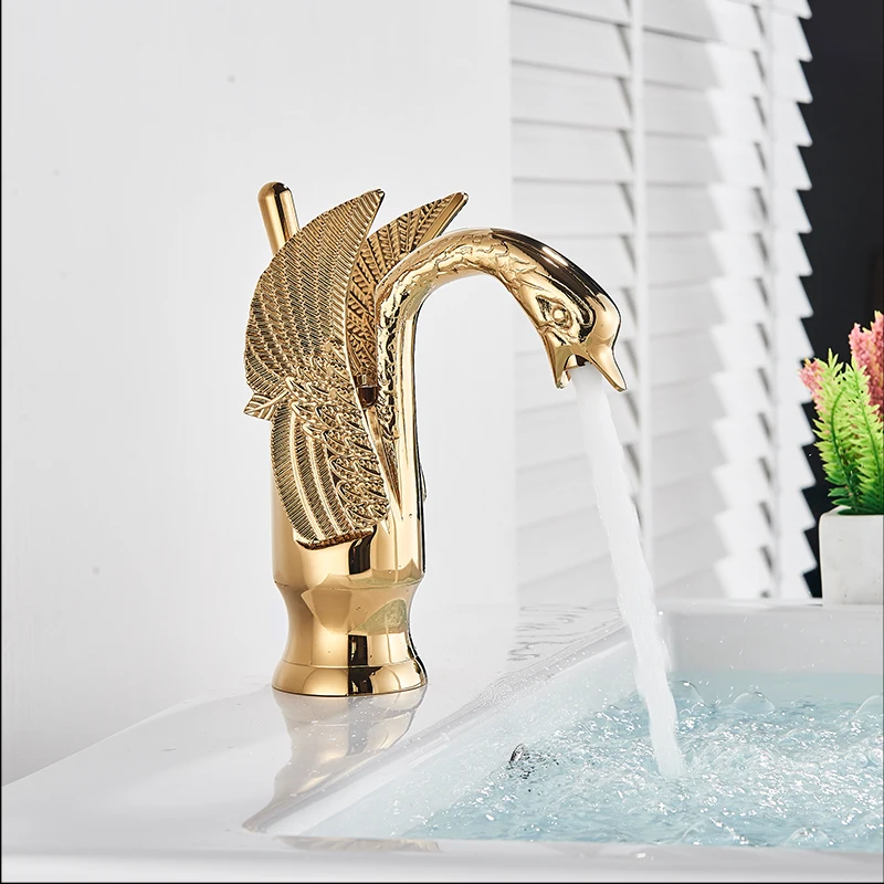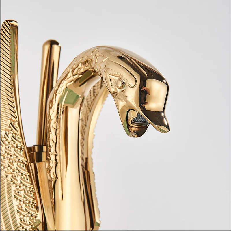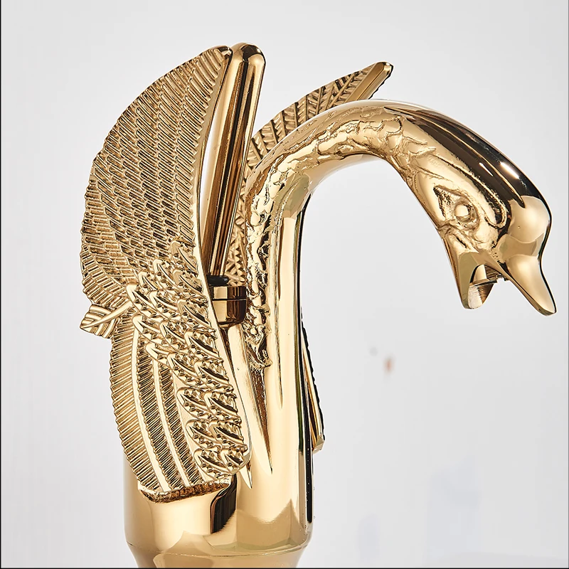 Латунный Смеситель для раковины с золотым креплением на палубе, кран для раковины для ванной комнаты, кран для раковины в форме лебедя + крышка для отверстия