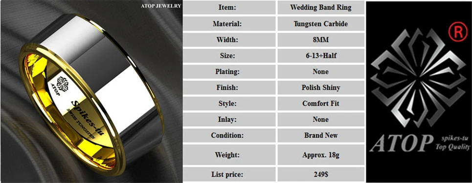 8 мм вольфрамовое мужское кольцо 14K золото полированный свадебный браслет мужские ювелирные изделия