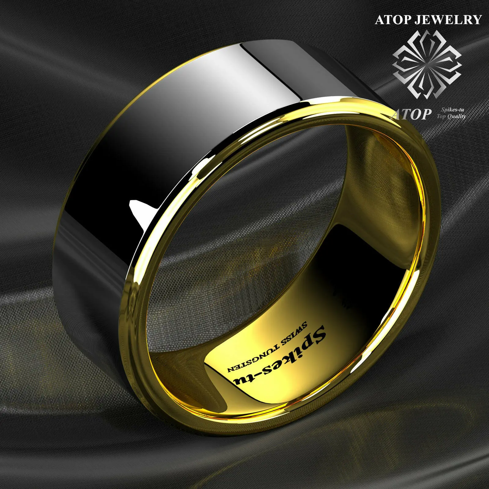 8 черных ромбов полированное сверху вольфрамовое кольцо 18 К золото...