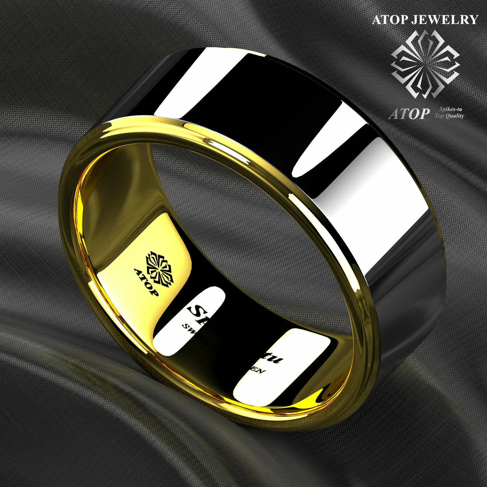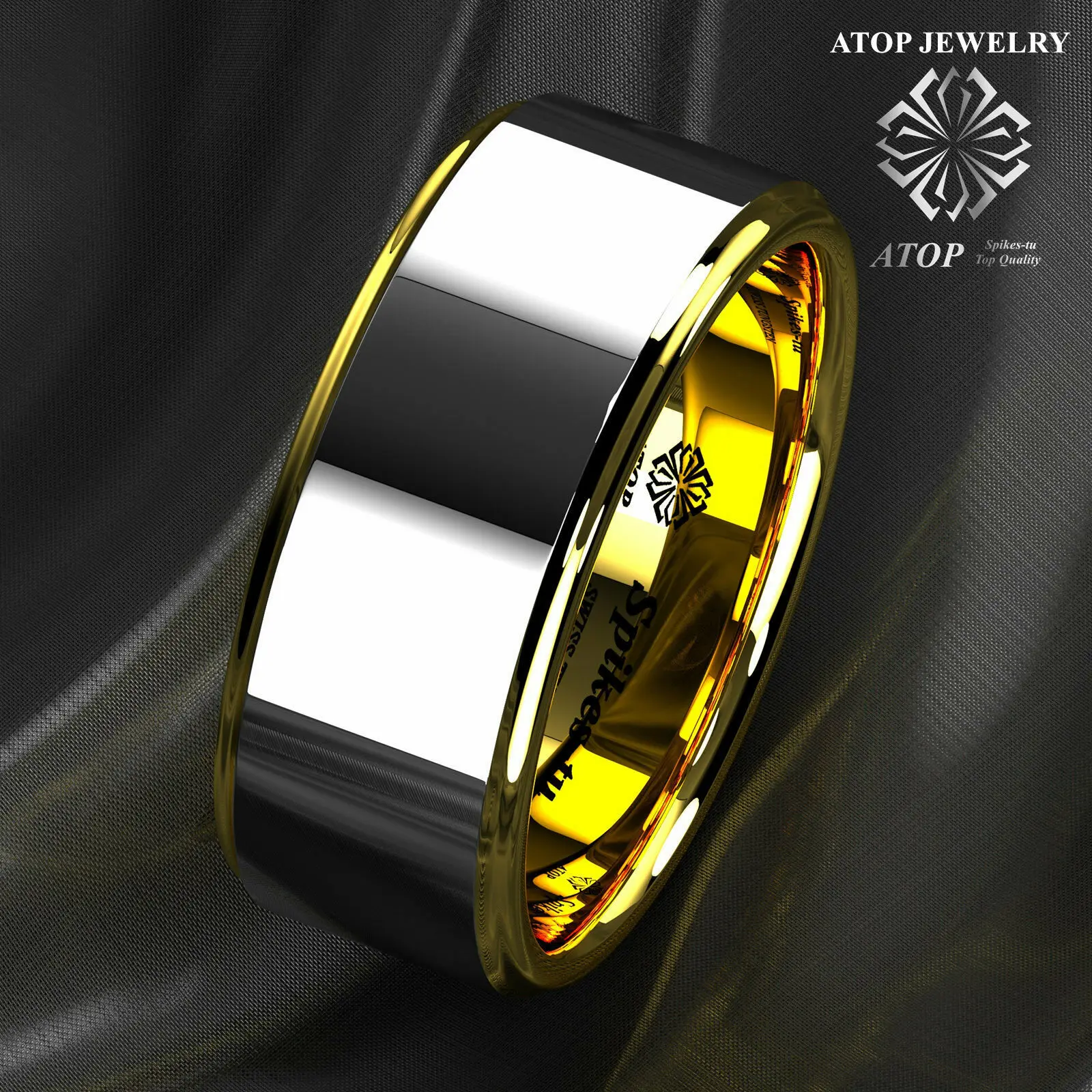 Мужское вольфрамовое кольцо с куполом 6 мм, 18 К, золото, серебро