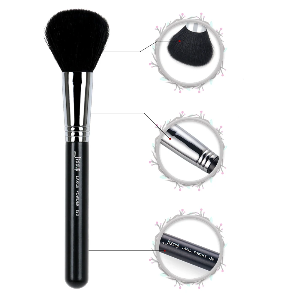 150-Большая кисть для нанесения пудры Длина кисти: около 19,5 см Длина щетины: около 4,3 см Тип рукоятки: дерево Тип волоса: синтетический волос Эта кисть особенно хорошо подходит для нанесения мягкого автозагара и пудры, благодаря своим мягким волокнам, которые образуют полную, округлую форму.