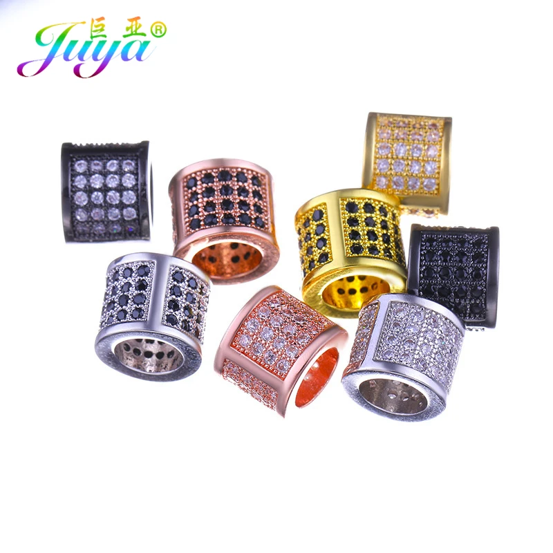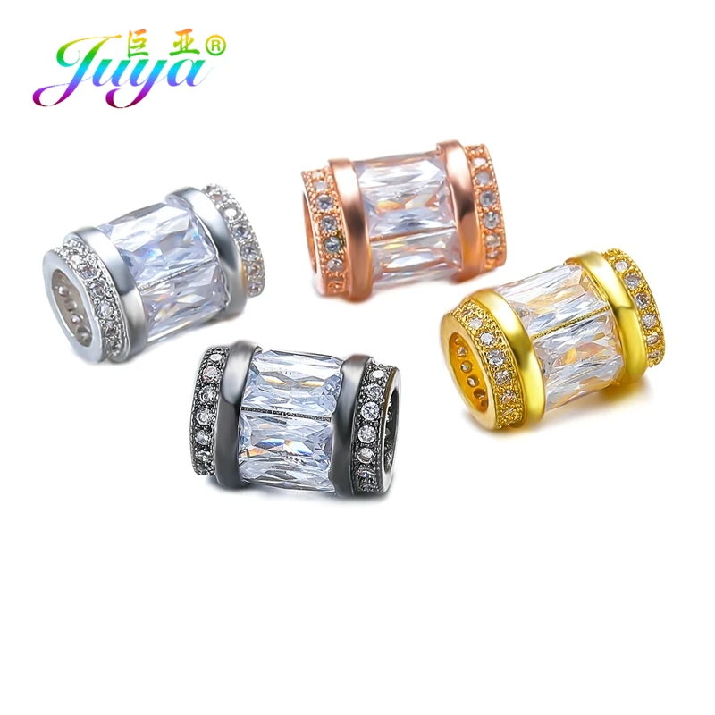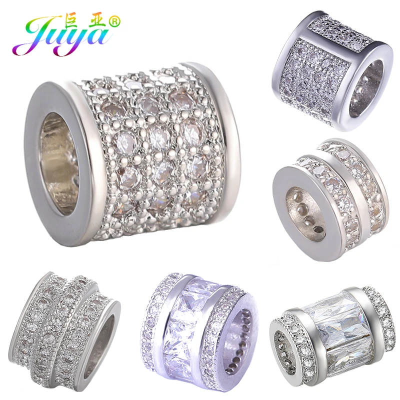 Juya DIY бусины в форме трубки с большим отверстием поставки золото/серебро кубический цирконий разделитель Шарм бусины для натуральных камней Бисероплетение ювелирных изделий