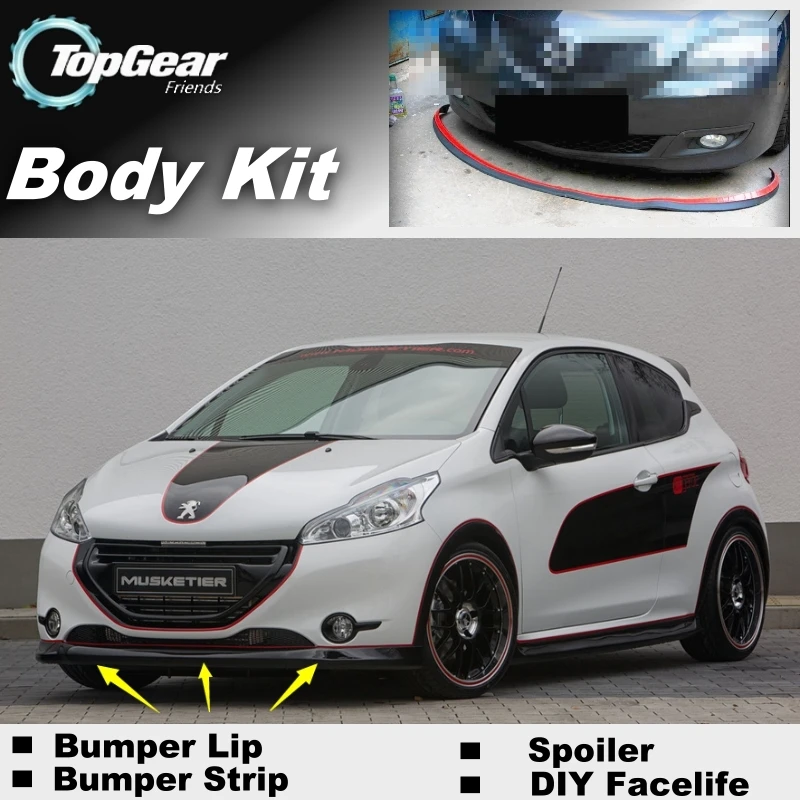 Для Peugeot 106 107 108 Бампер для губ/передний спойлер дефлектор для верхней части передач для тюнинга автомобиля/комплект верхней части корпуса/юбка в полоску