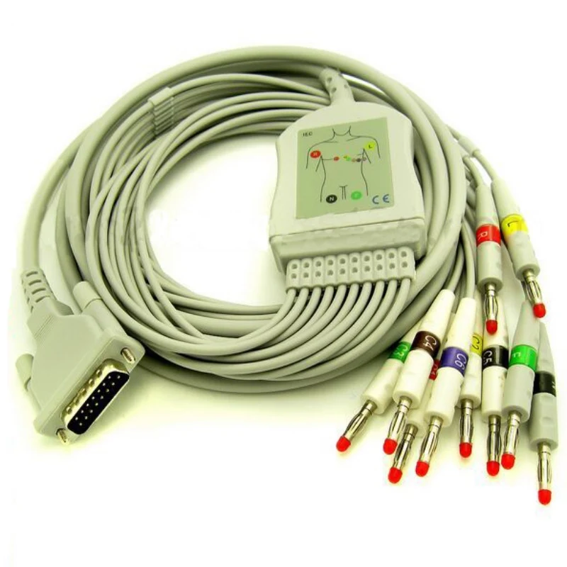 Совместимый с Schiller AT1 AT2 CS6 CS100AT101 кабель для ЭКГ с выводами 10 выводов медицинский кабель EKG 4,0 банановый конец IEC