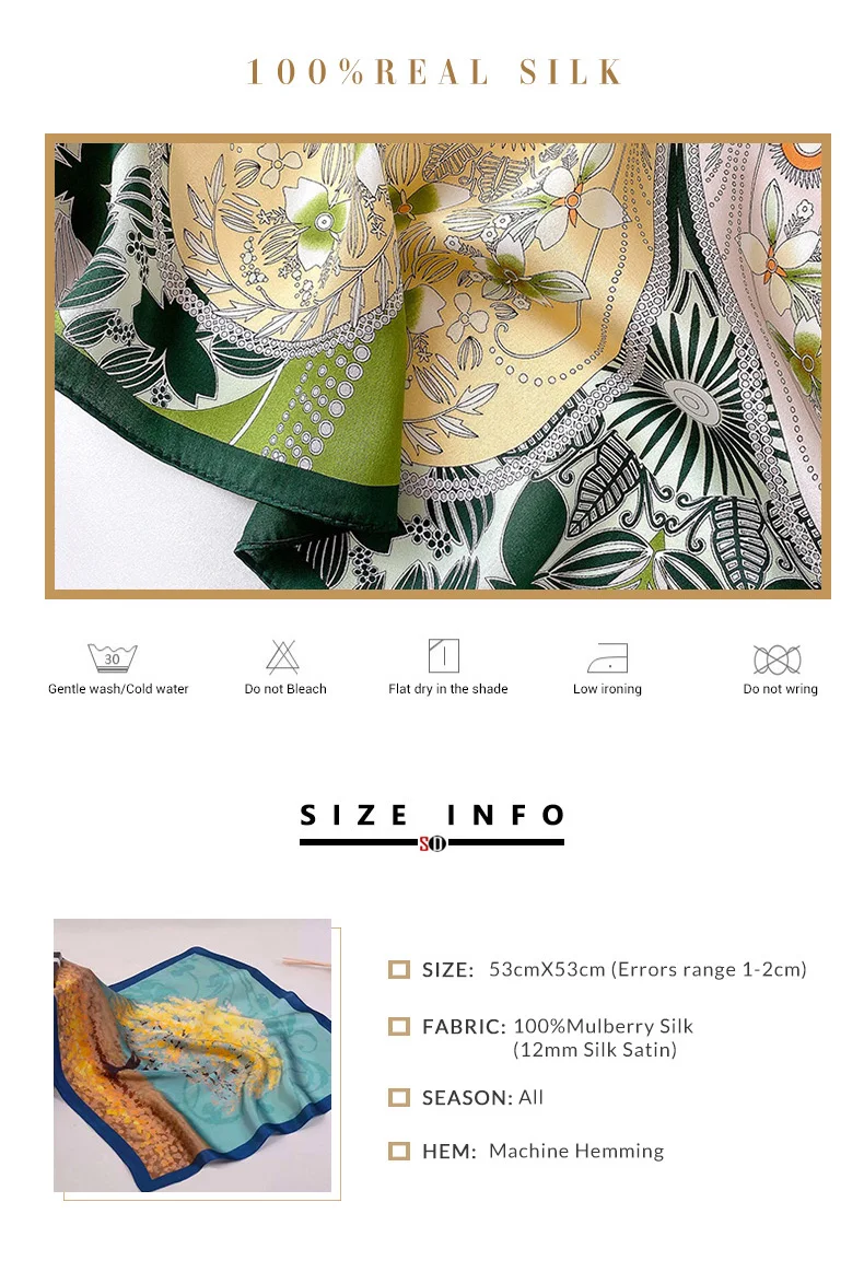Квадратные шарфы Suya Dream из 100% натурального шелка, размер 53x53 см, с принтом, Шелковый женский шарф