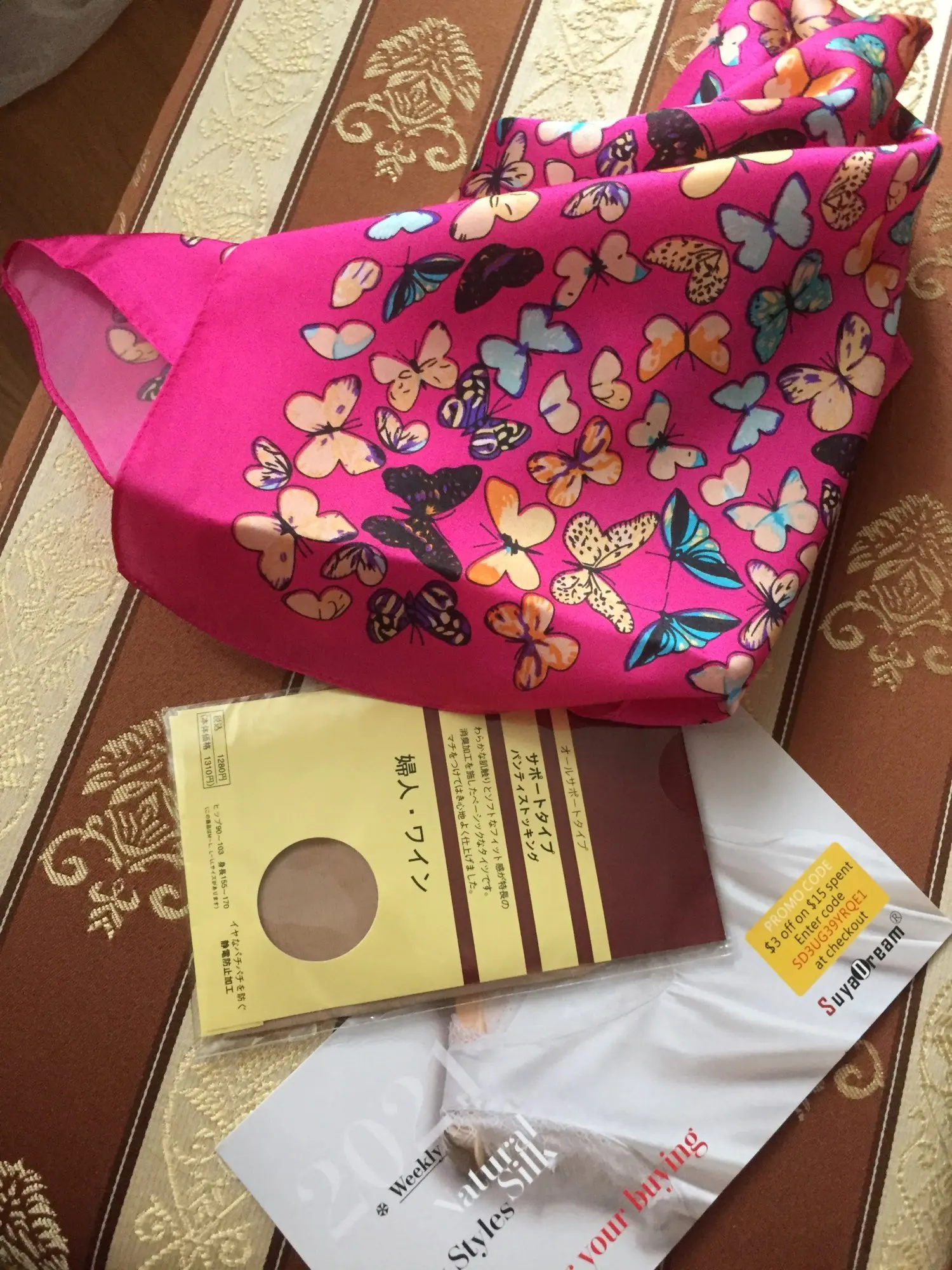 Платочек супер. У меня уже есть такой. Когда то подруга привезла из Китая с отдыха. Это такой же, шелковый. В подарок продавец положил ластичные носочки. Спасибо. Продавца и товар рекомендую