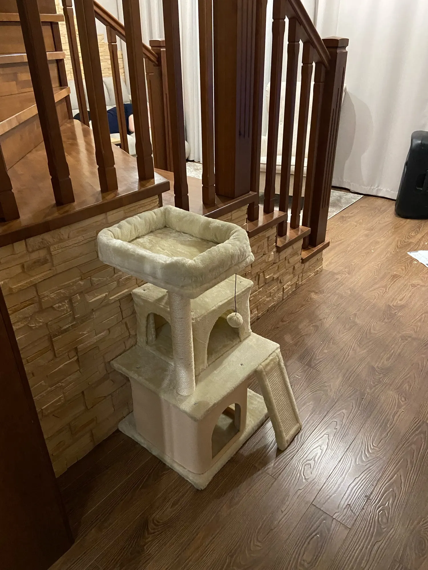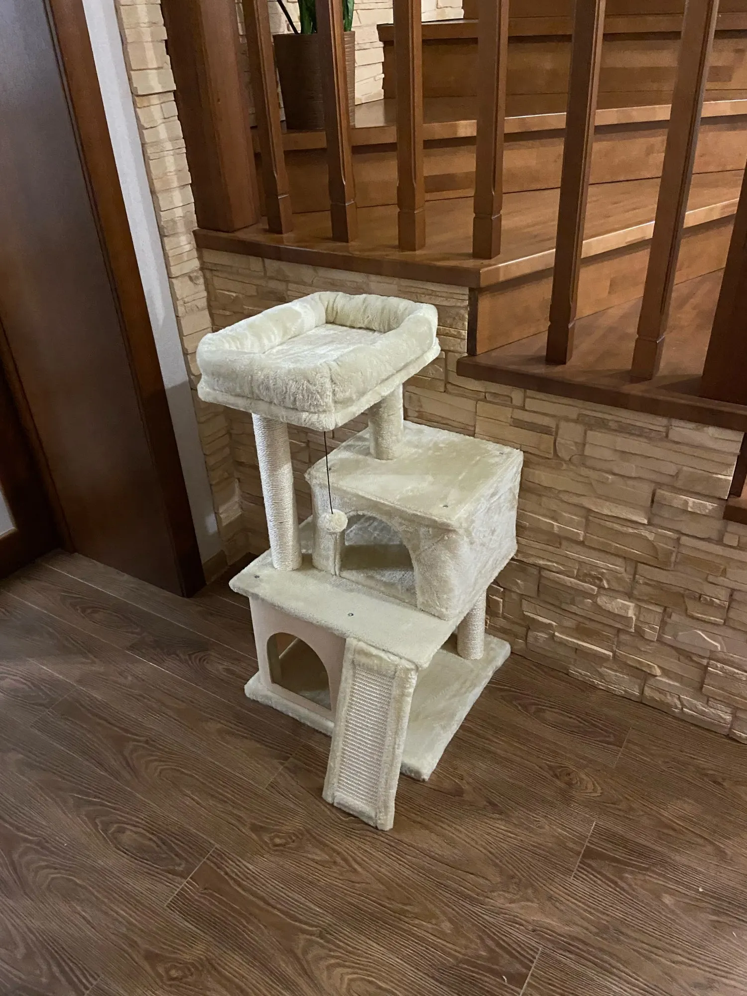 Прочный и безопасный:Стабильность всегда в приоритете. Нижнее основание усилено, что обеспечивает устойчивость всего кошачьего дерева