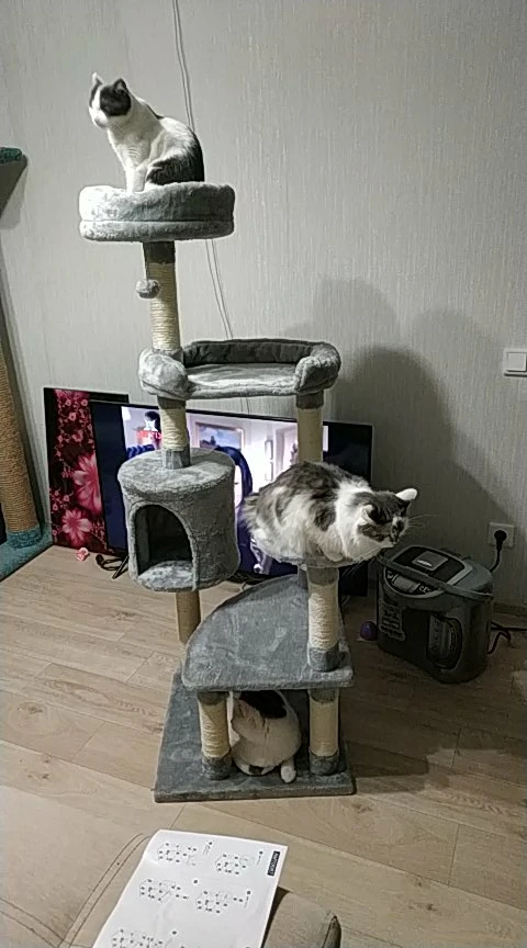 Ромпинг и скалолазание:5-уровневая конструкция, она удовлетворяет потребность кошек в подъеме и поиске разной высоты. Они могут перепрыгивать с одного уровня на другой и лежать на самом высоком верхнем окуне, чтобы наблюдать за окружающей обстановкой и лучше смотреть в окно.