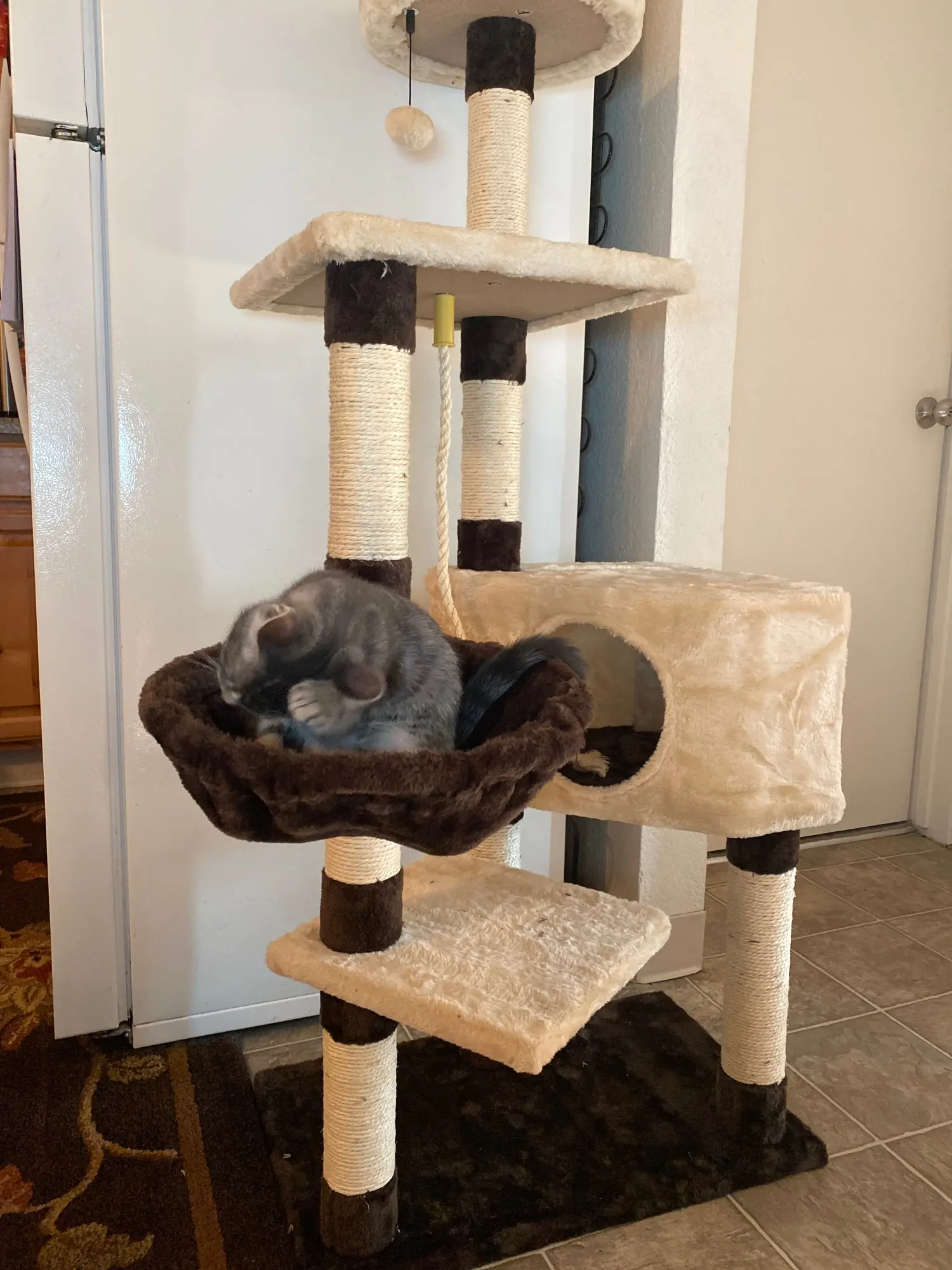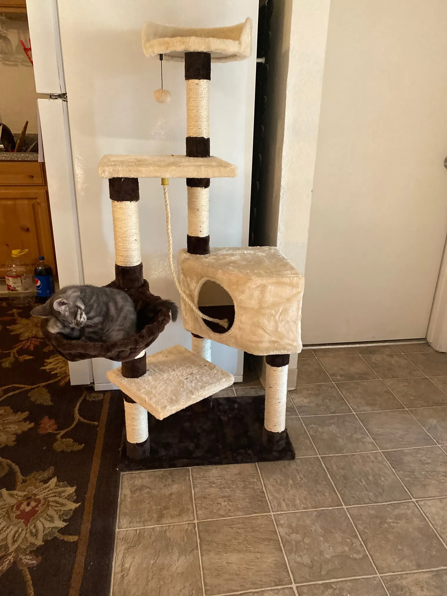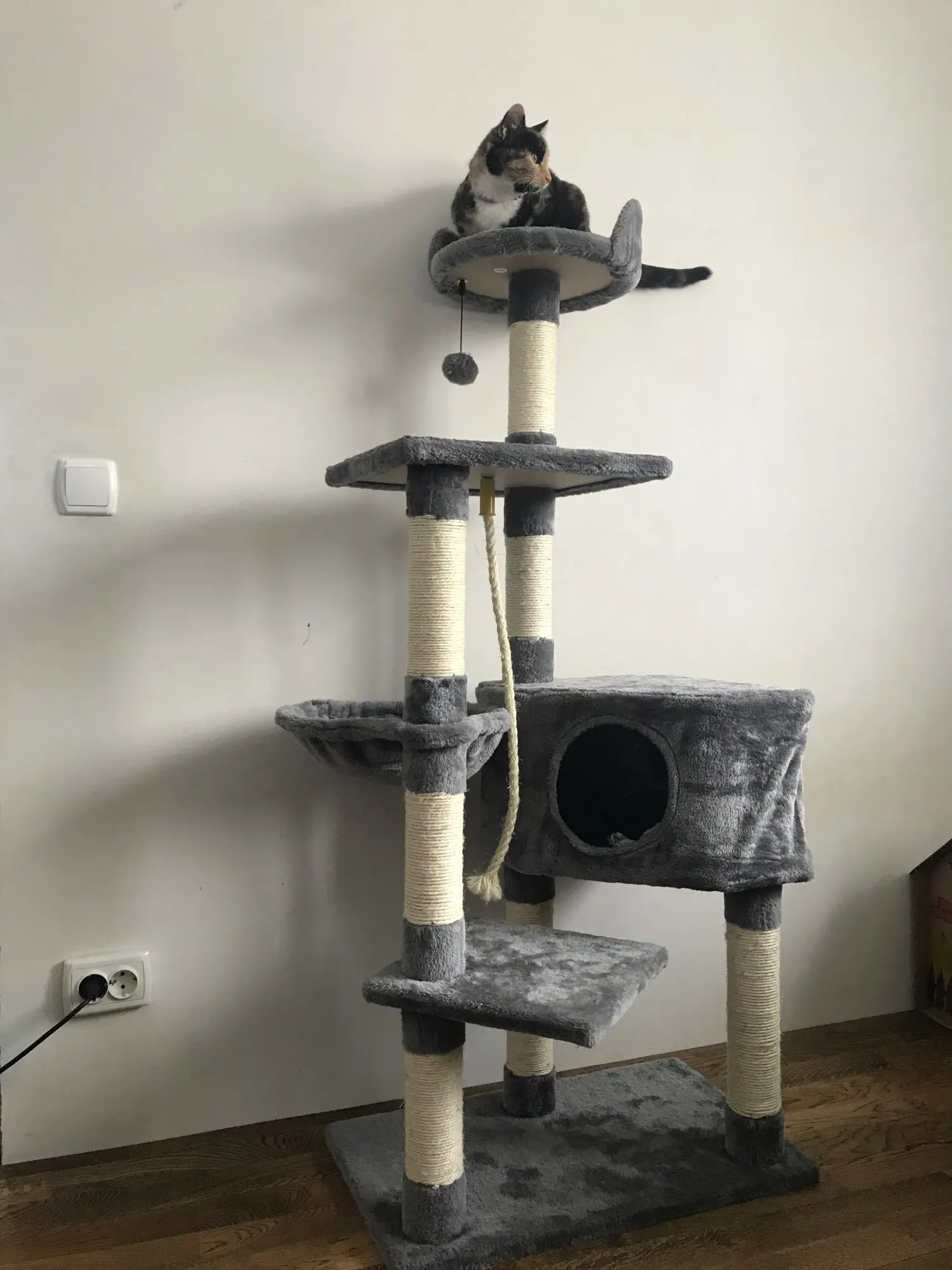 ·Верхняя кровать дает вашему кошачьему другу лучший вид в доме. Сизалевые веревочные стойки стимулируют естественное появление царапин.