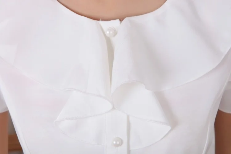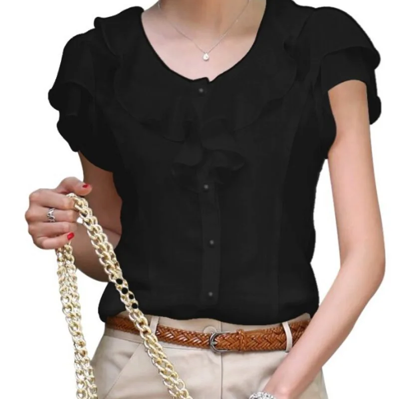 Блузка женская шифоновая с коротким рукавом и оборками, однотонная белая, размеры до 5XL