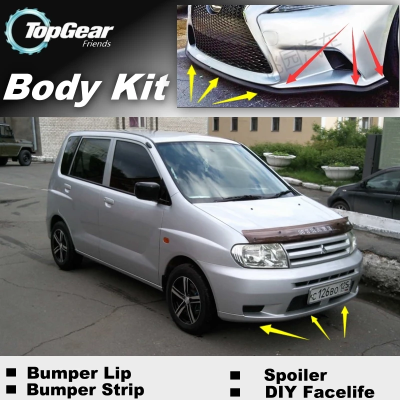 Для Mitsubishi Dingo Бампер для губ/передний спойлер дефлектор для верхней части передач для тюнинга автомобиля/комплект верхней части корпуса/юбка в полоску