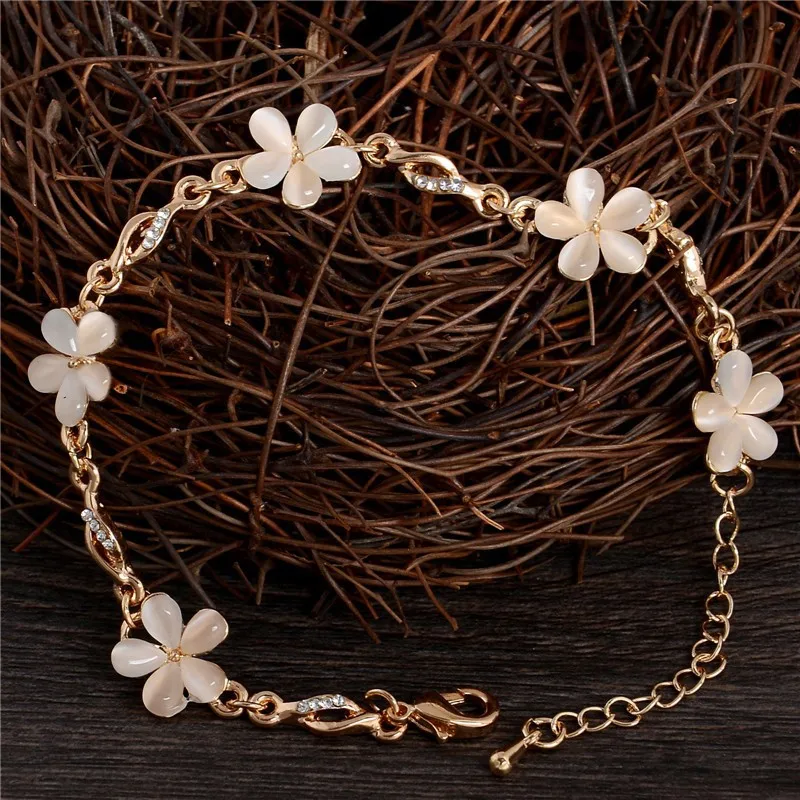 Женские модные свадебные ювелирные изделия цветок Опал Шарм браслеты золотой цвет кристалл эффектные браслеты и браслеты