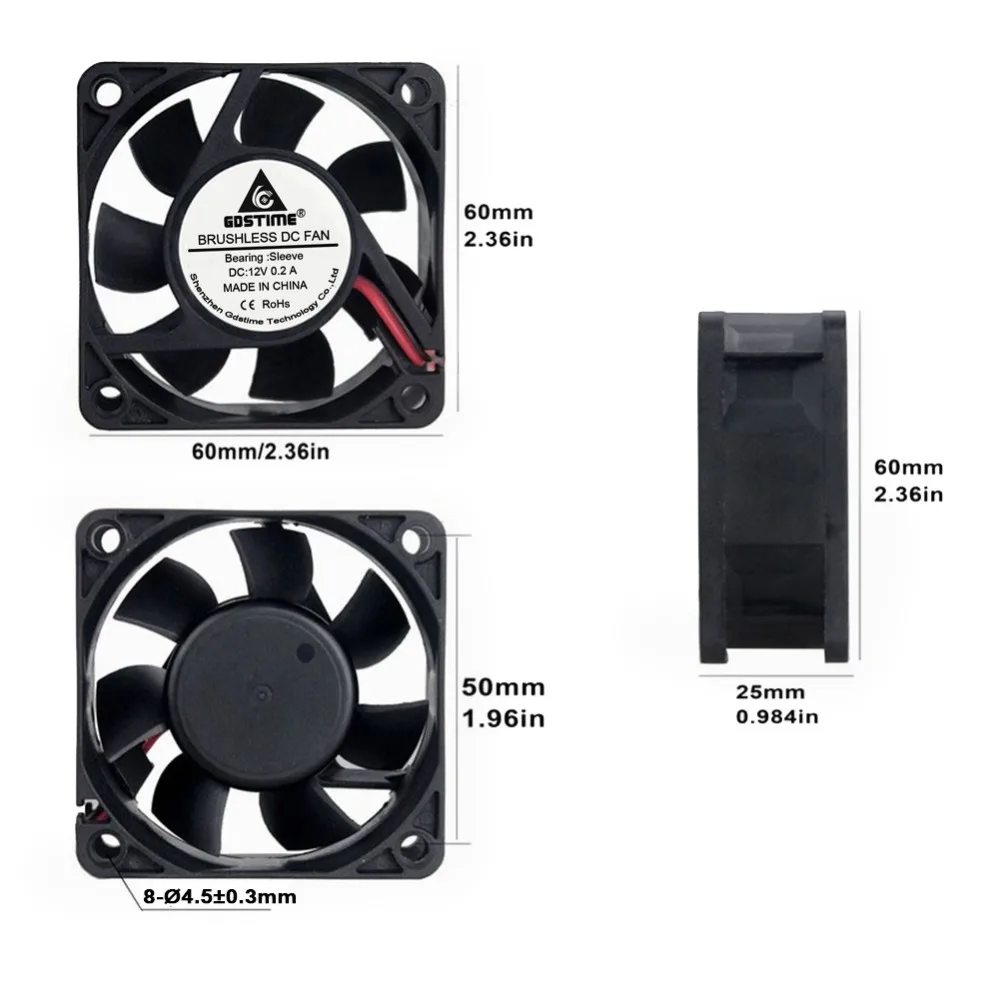 Вентилятор Gdstime, 12 В, 60 мм, 60x60x25 мм, 6 см, 6025, 2 контакт...