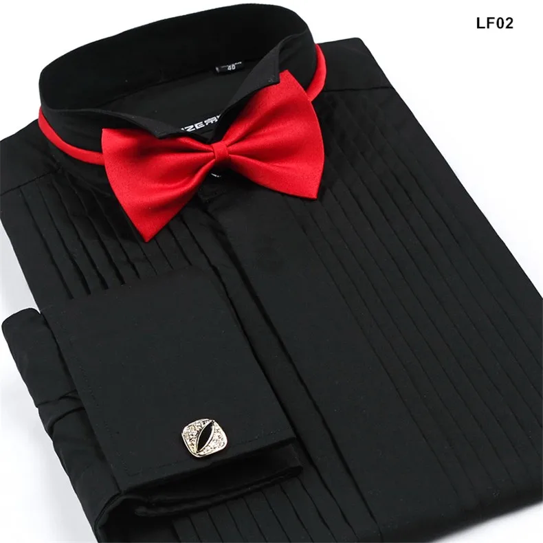 Мужская рубашка под смокинг, с французскими манжетами, однотонная, с воротником-крылышком, с длинными рукавами, деловая, для свадьбы, для жениха