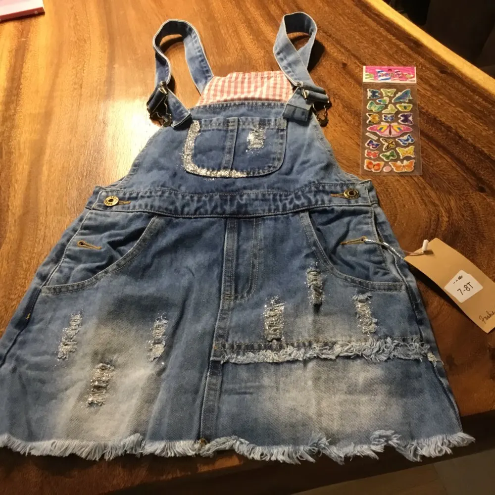 Джинсовый сарафан на подтяжках для девочекСамая низкая цена на Aliexpress!100% Высокое качество100% хлопокОчень рекомендуюКласс А