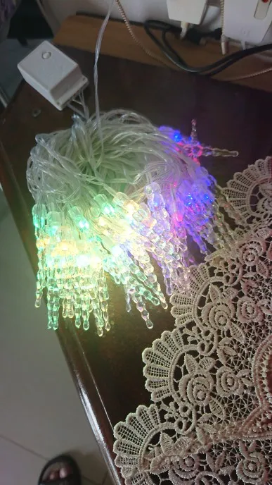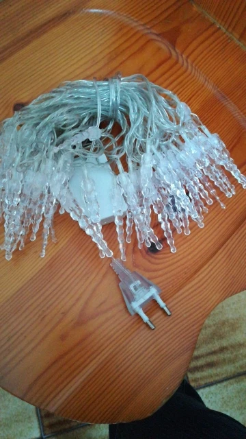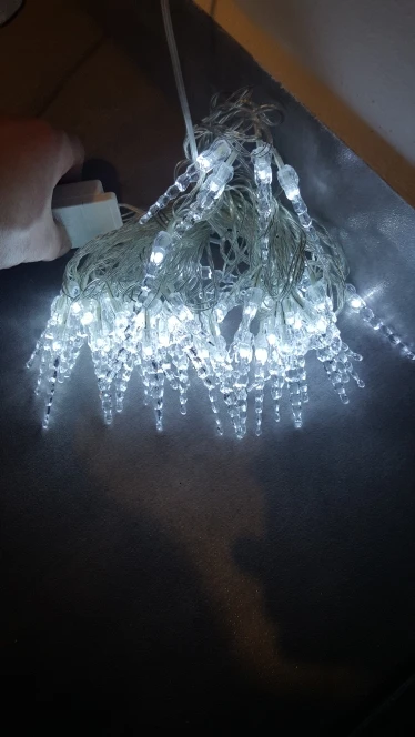 сосульки очень маленькие по высоте, описанию соответствует только длина провода гирлянды..... разочарован..... но оно работает...... светит холодным белым светом, доставка около одного месяца, долго лежала на границе в ожидании отправки и на терминале после таможни.