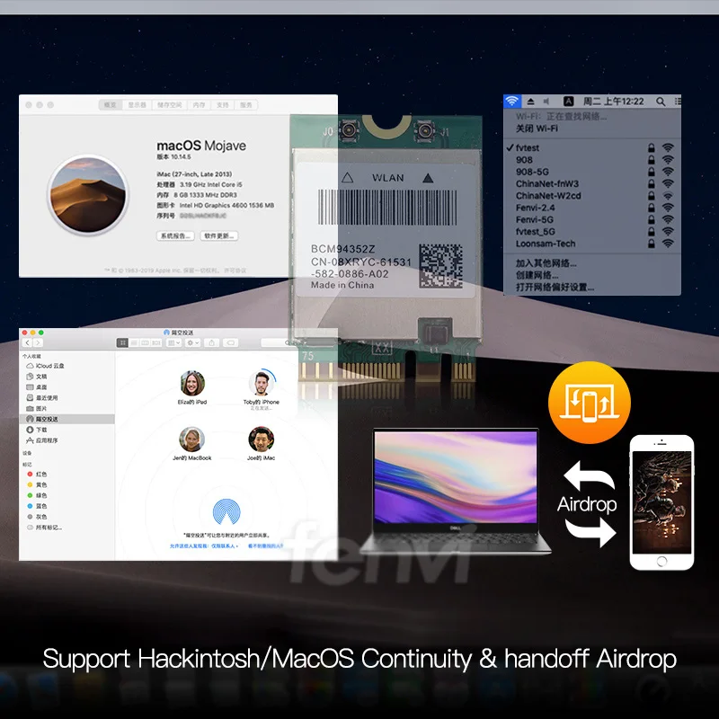 все отлично работает на hackintosh, и wifi на всех частотах и Bluetooth, Airdrop работает. Перед тем как подтверждать проверить насколько стабильно работает Bluetooth.