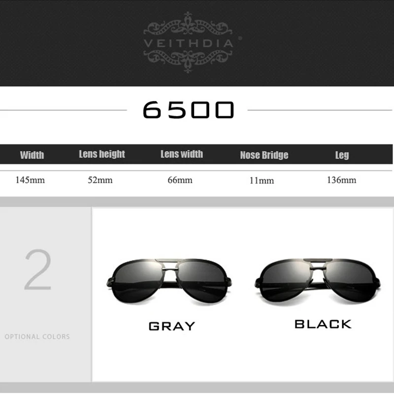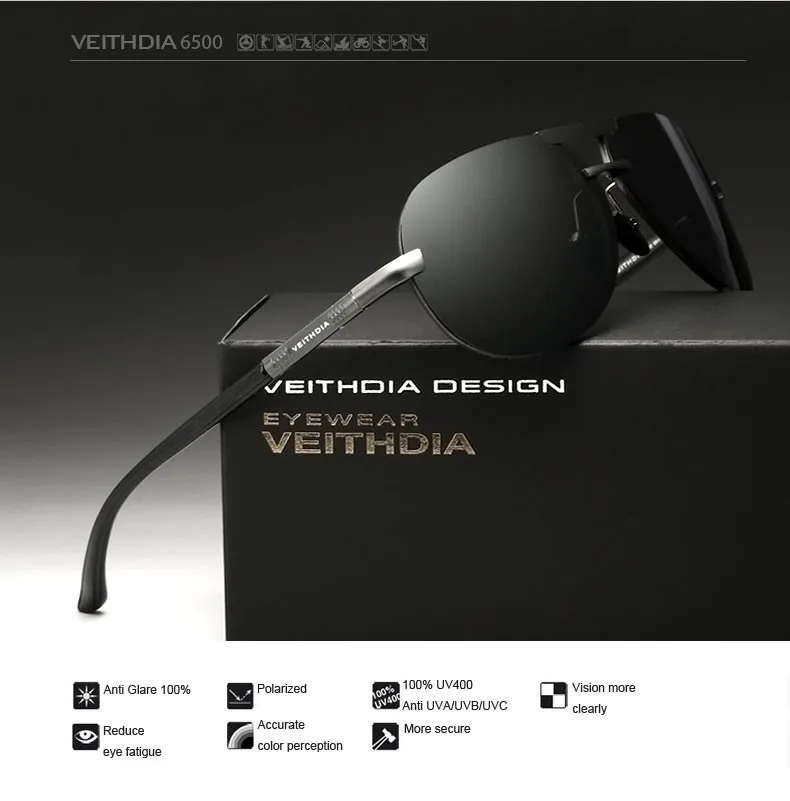 Мужские солнцезащитные очки VEITHDIA, классические очки из алюминие...