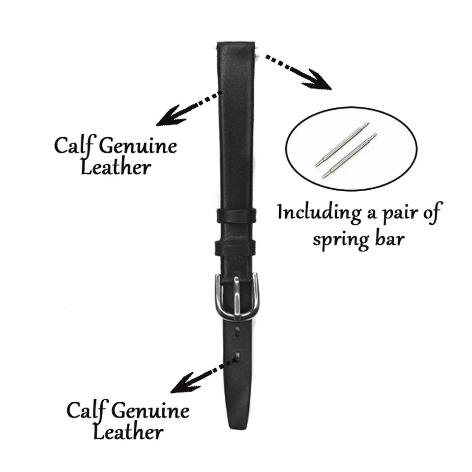 10 мм 12 мм черный темно-коричневый мягкий ремешок для часов из натуральной кожиМатериалИз натуральной нешлифованной кожиЦветЧерный, темно-коричневыйРазмеры/Ширина10 мм = 3/8 дюймов, 12 мм = 15/32 дюйма