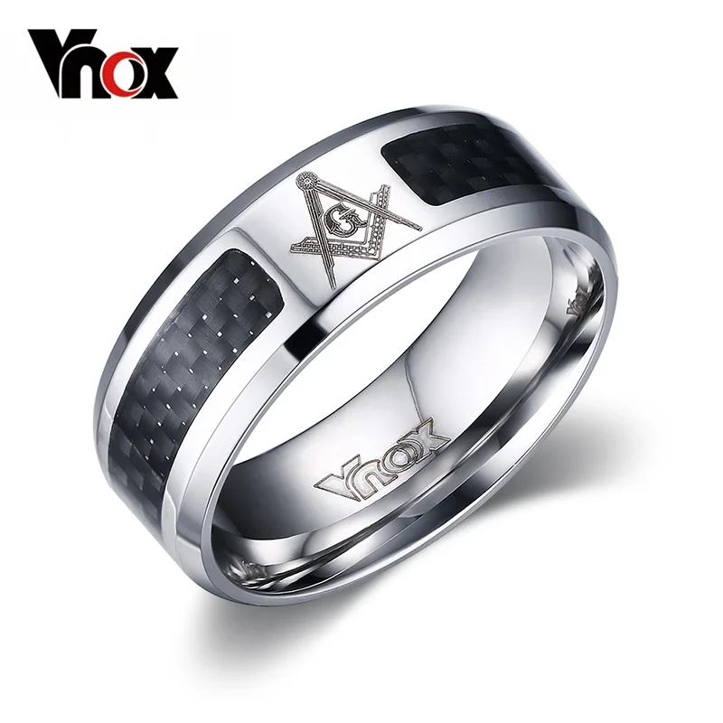 Vnox масонских Для мужчин кольцо Нержавеющая сталь и углерода Волокно 8 мм Панк Свадебные украшения американский размер 7 8 9 10 11 12