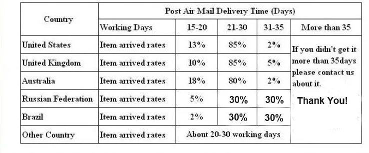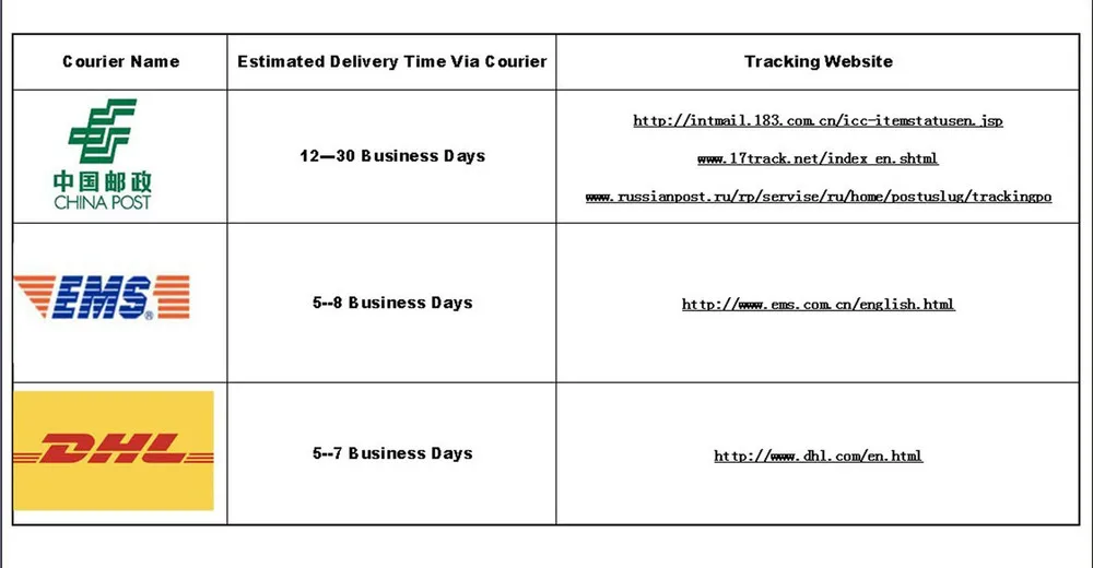 3. Доставка: доставка через post air обычно занимает 12-20 дней. Также доступны EMS, UPS, DHL и FedEx.