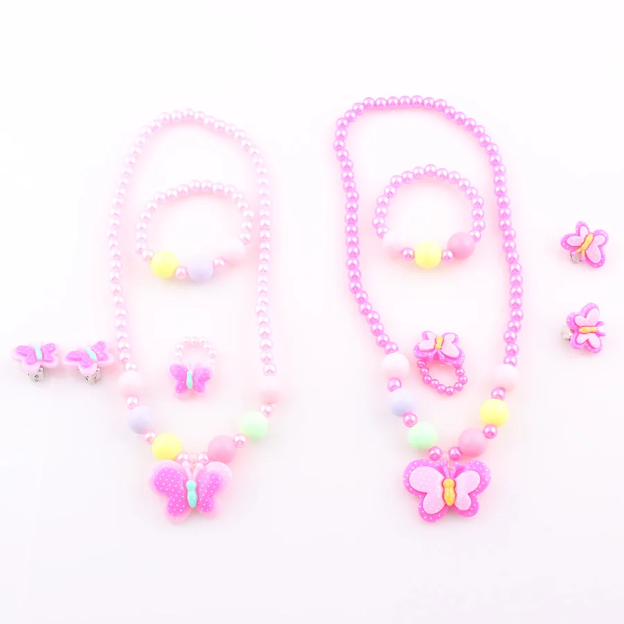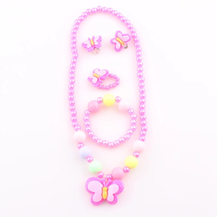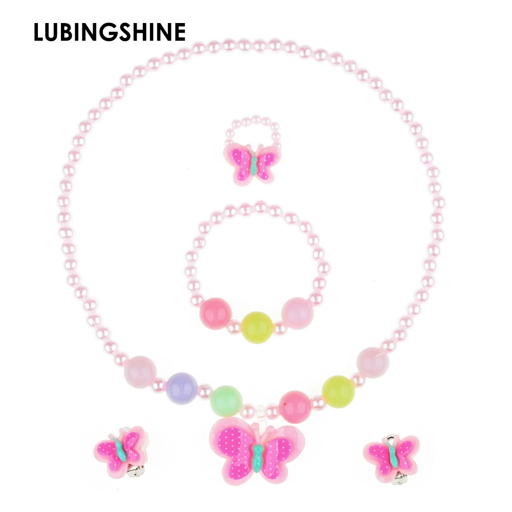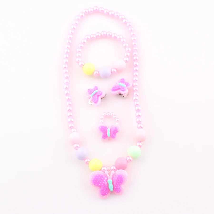 Количество: 1 комплект Материал: смола, искусственный жемчуг Цвет: ярко-розовый светильник-розовый Размер: Эластичный для детей Классический и модный детский комплект украшений1 мм = 0,0393 дюйма, 1 дюйм = 25,4 мм