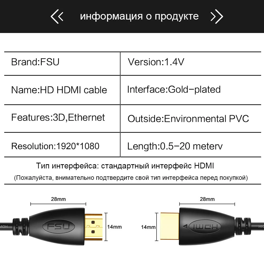 Товар полностью соответствует описанию. Кабель чуть тоньше, чем обычно, как и указано в характеристиках, но на качество это не влияет. Кабель работает, видео передаёт, звук передаёт. Заказывал 8 метров, длина соответствует. Доставка курьером заняла ровно неделю до Сочи. Продавца рекомендую.