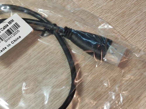 Длина кабеля ровно 50мм от штекера до штекера, кабель на вид качественный, очень компактный, то что нужно было для связи ноута и внешнего монитора на небольшом столе. Позолота конечно фейковая, больше на латунь похожа))